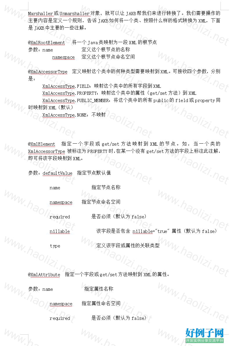 【源码简介】JaxbContext生成xml文件或java类对象转化注解参考文档