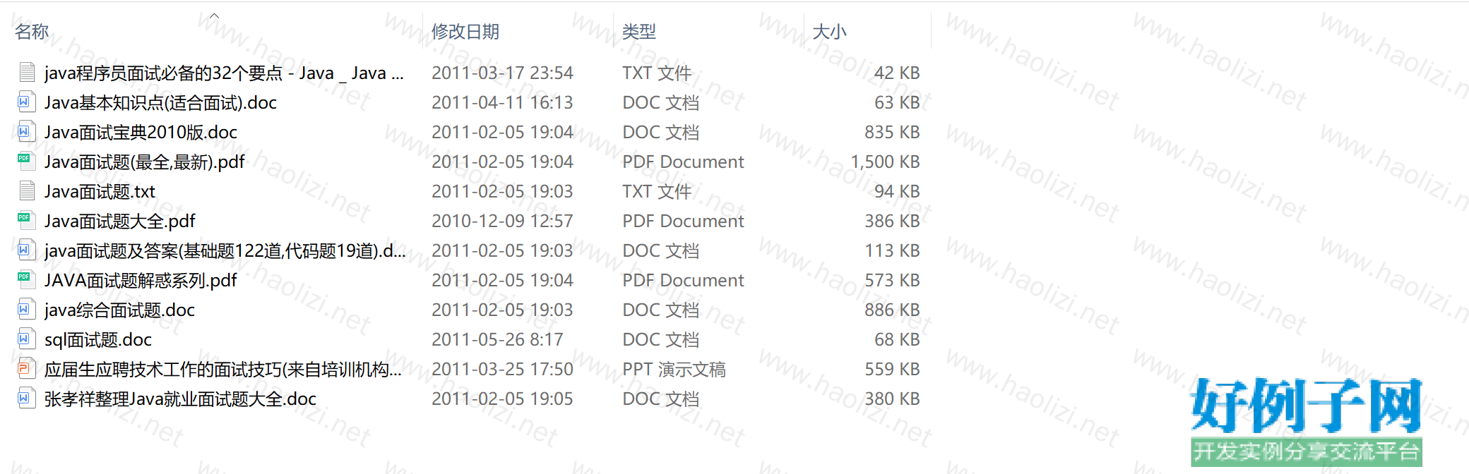 张孝祥整理Java就业面试题大全.doc 应届生应聘技术工作的面试技巧(来自培训机构多年经验总结).ppt sql面试题.doc JAVA面试题解惑系列.pdf Java面试题大全.pdf ...java程序员面试必备的32个要点 - Java _ Java SE.txt