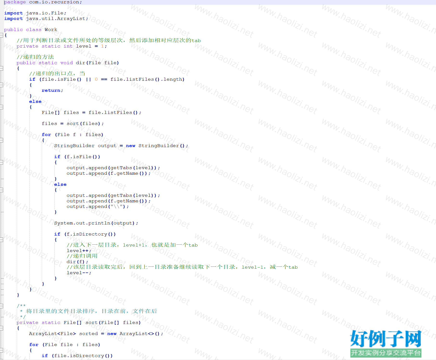 Java实现遍历目录下的目录文件并打印,打印时目录对应等级缩进