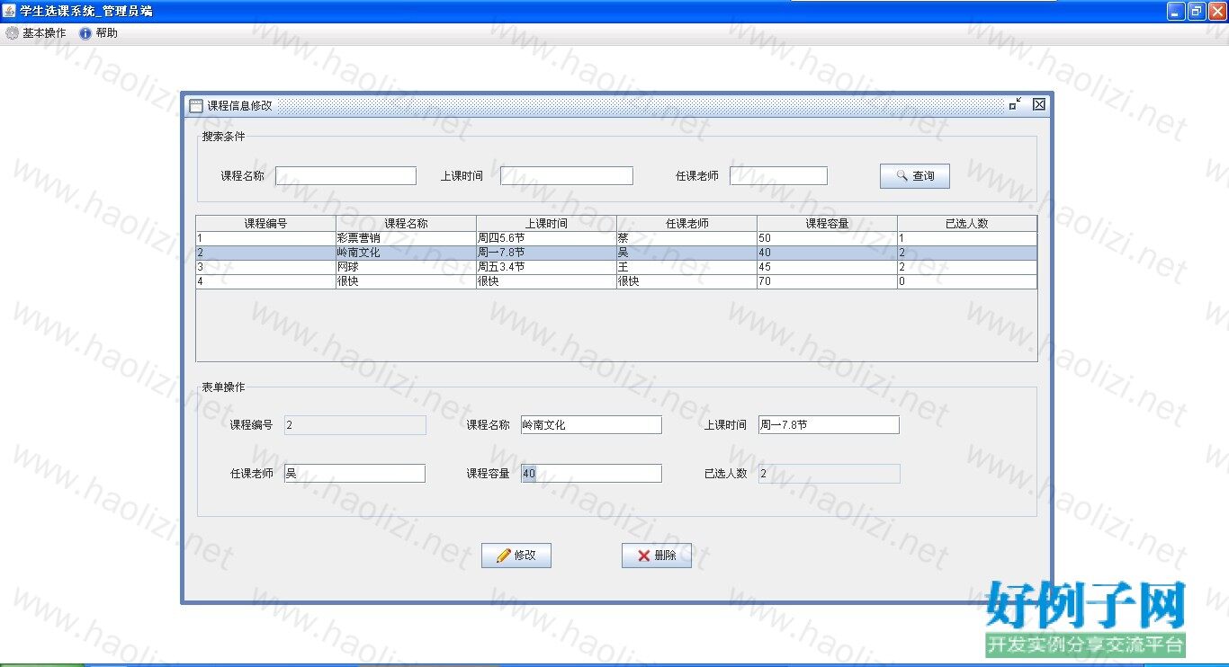 3.修改信息模块.教师可以实现对学生信息和课程信息的修改.