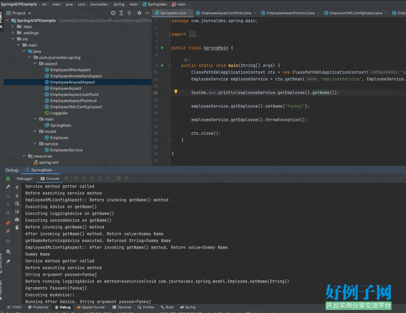 Spring AOP 切面编程实例源码