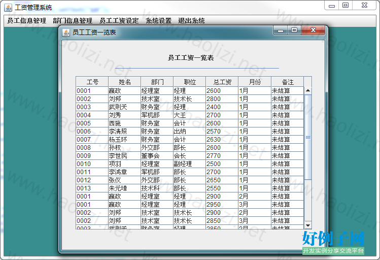 员工工资管理(源码+文档+数据库+视频+截图)