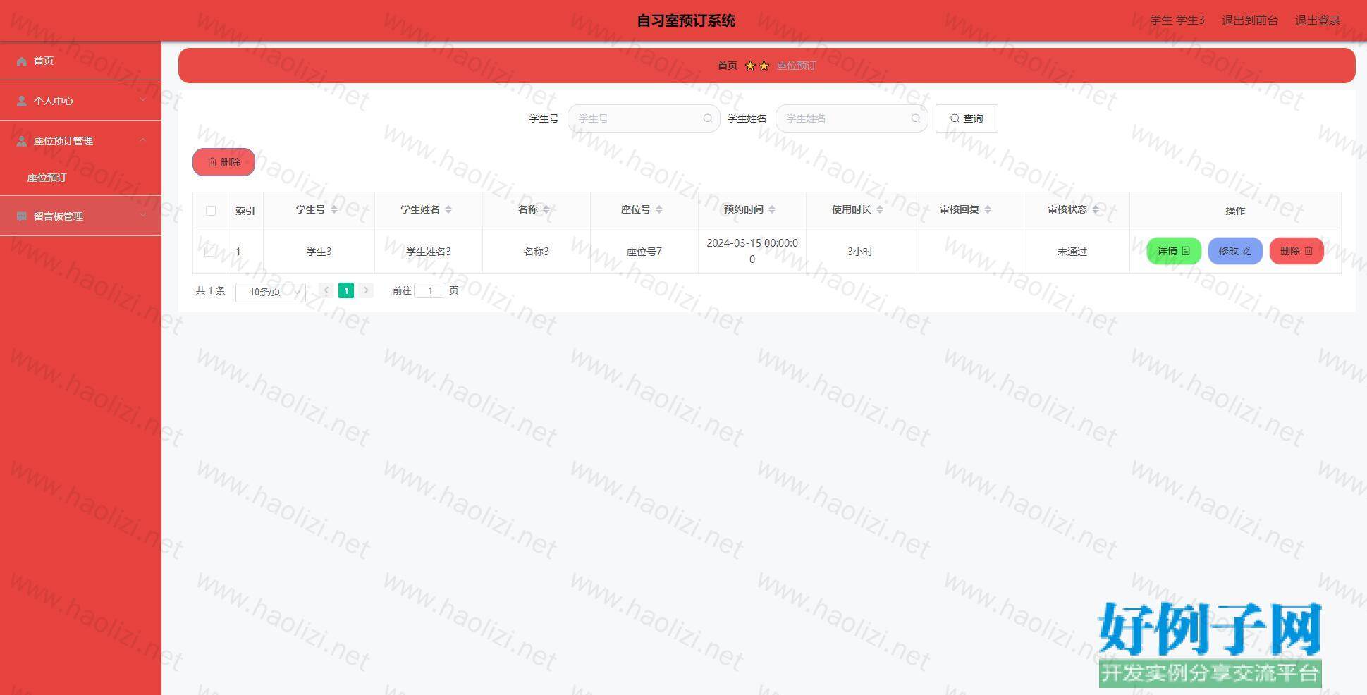 - 简介:SpringBoot+Vue自习室预约(预定)管理系统.zip