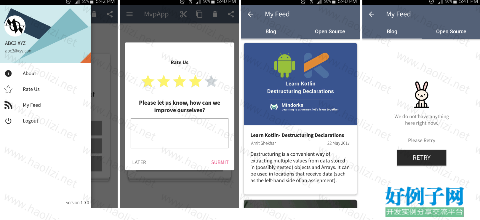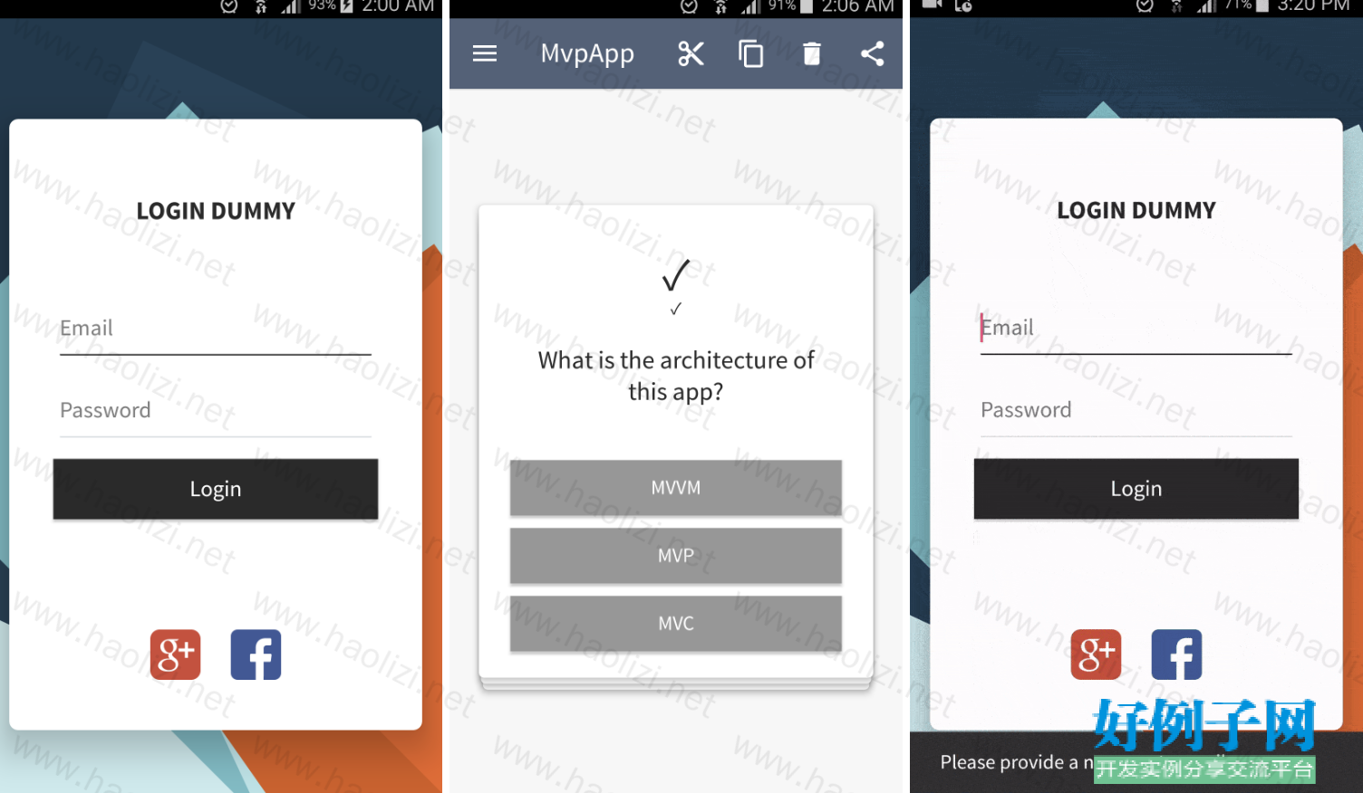 这个仓库包含了一个详细的示例应用程序,它使用Dagger2、Room、RxJava、FastAndroidNetworking和PlaceHolderView来实现MVVM架构